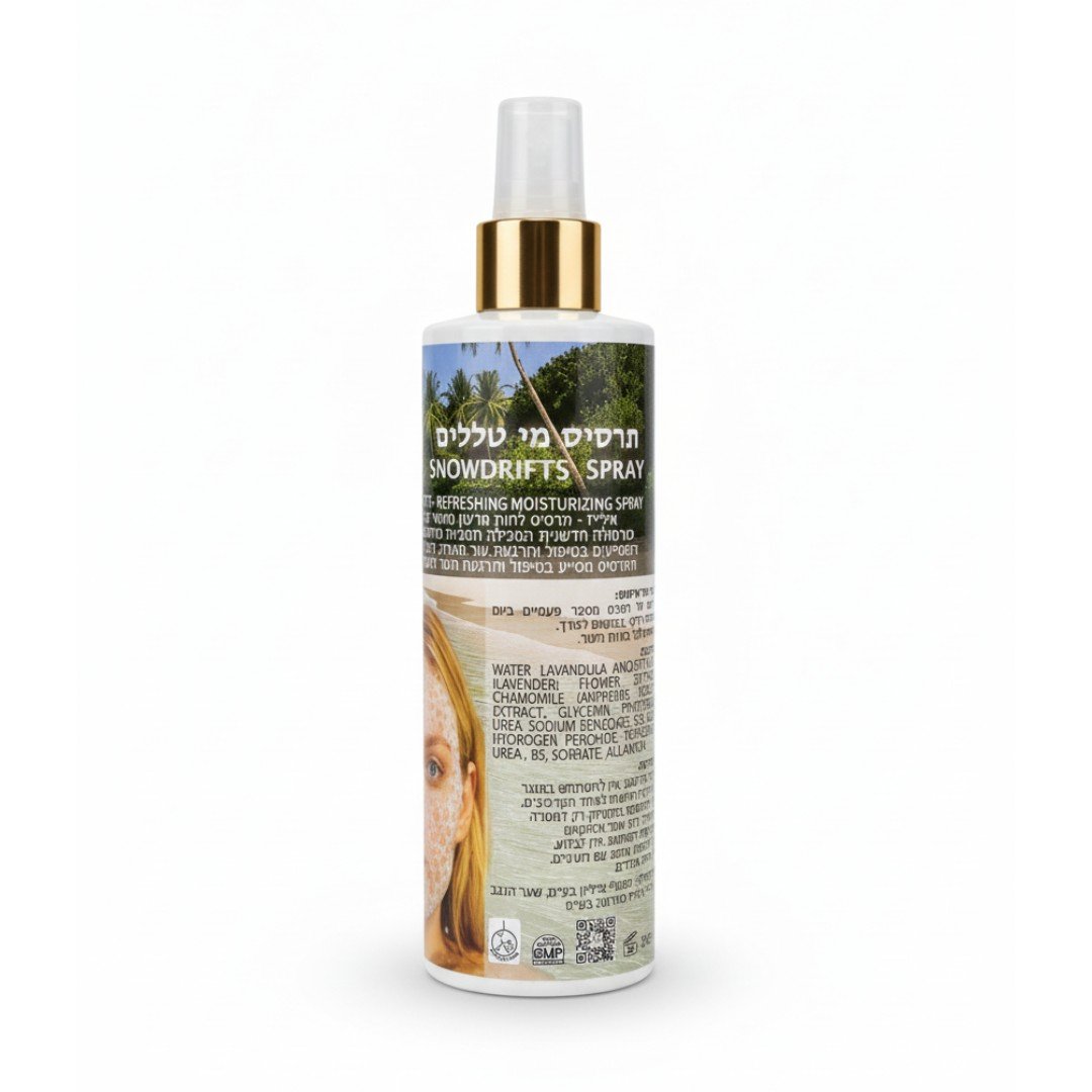 הסבר מקצועי ומעמיק של תרסיס מי הטללים (Snowdrifts Spray) של חברת אילייז פארמה, כולל הסבר על כל רכיב, חשיבות השילוב של מי חמצן רפואי, ואופי הפורמולה כפורצת דרך בעולם הקוסמטיקה: